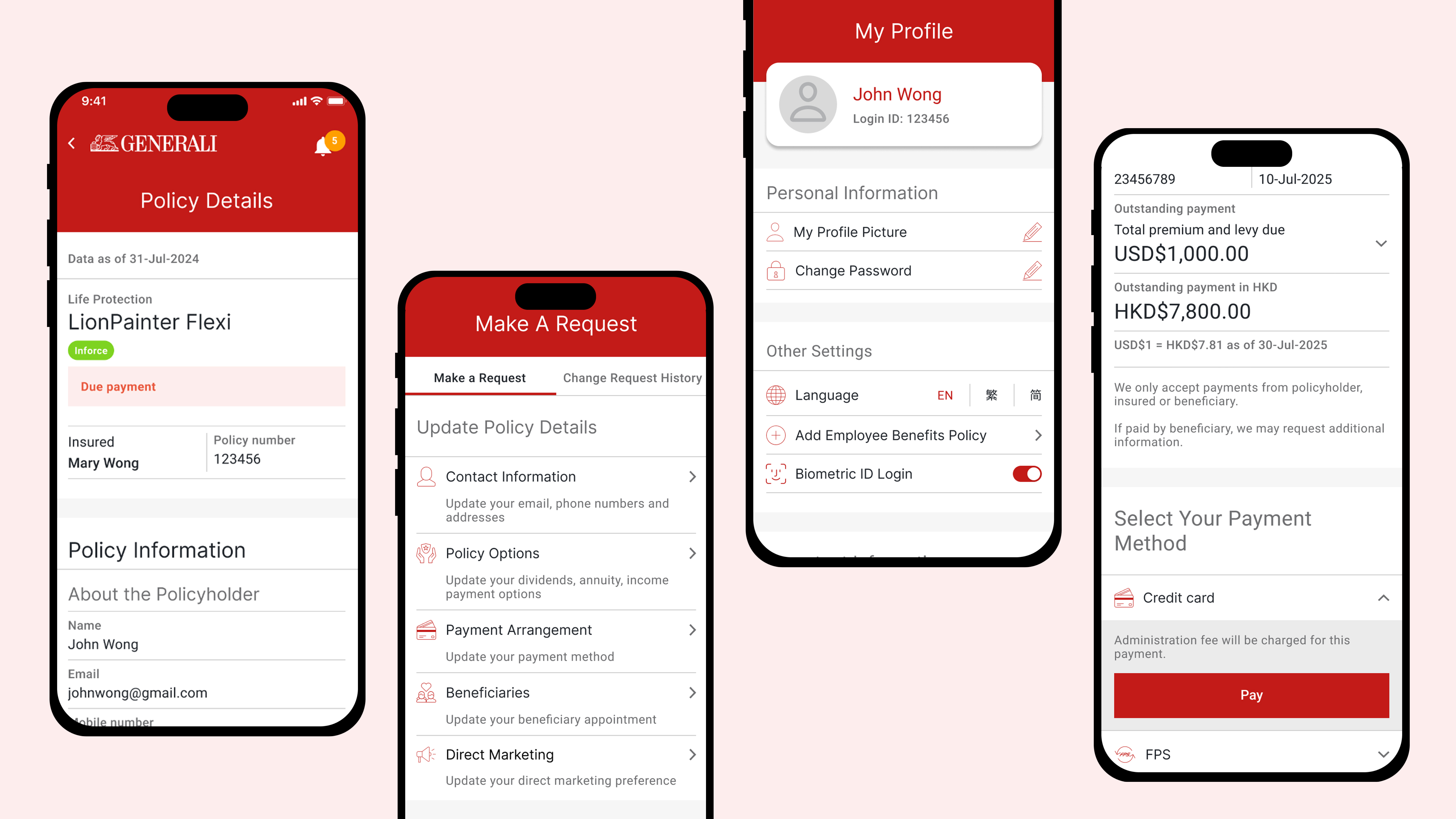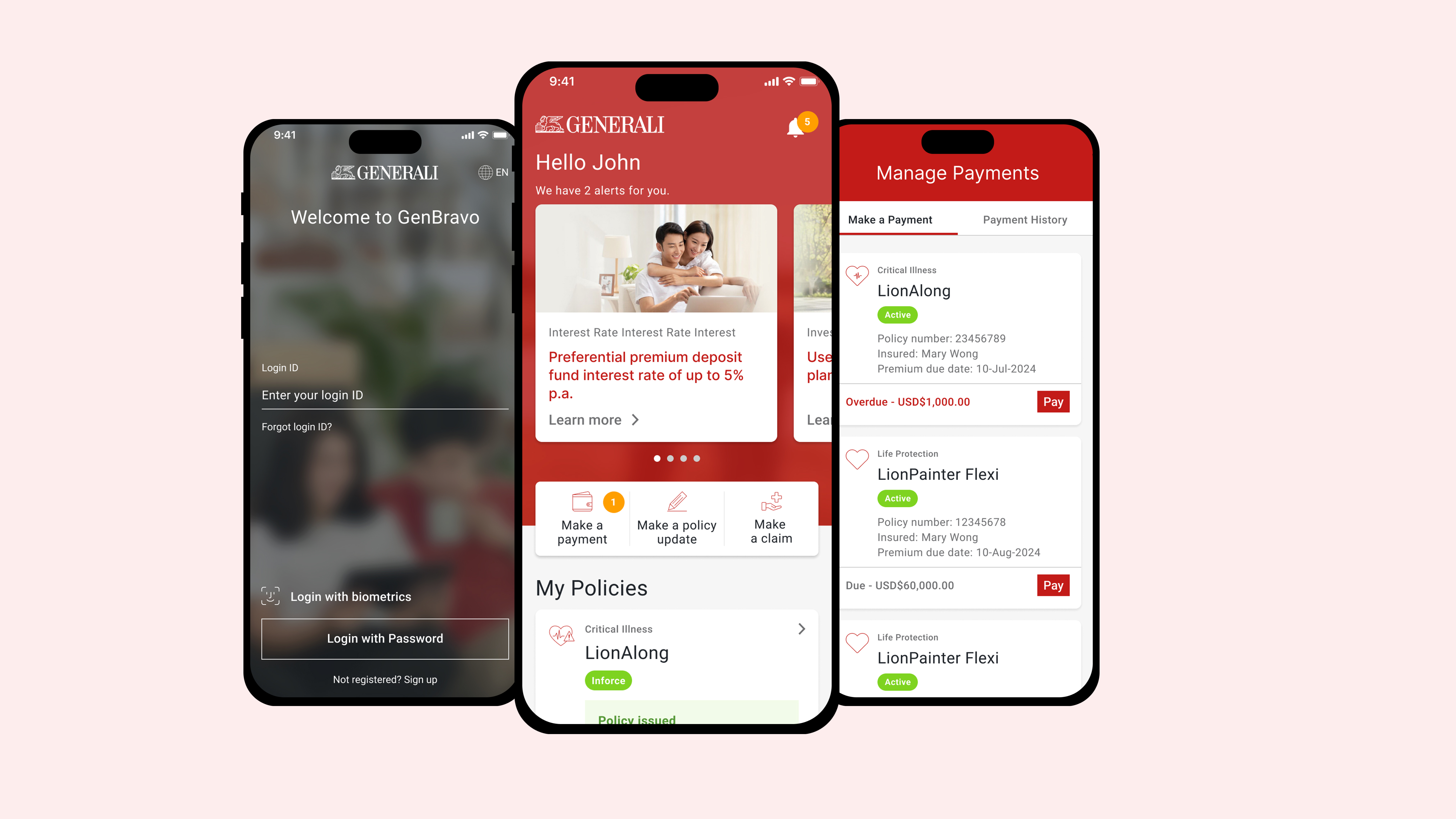 User-centric app designs created for Generali Insurance, provides a seamless user experience offering comprehensive features that allows customers can effortlessly manage all aspects of their insurance policies.